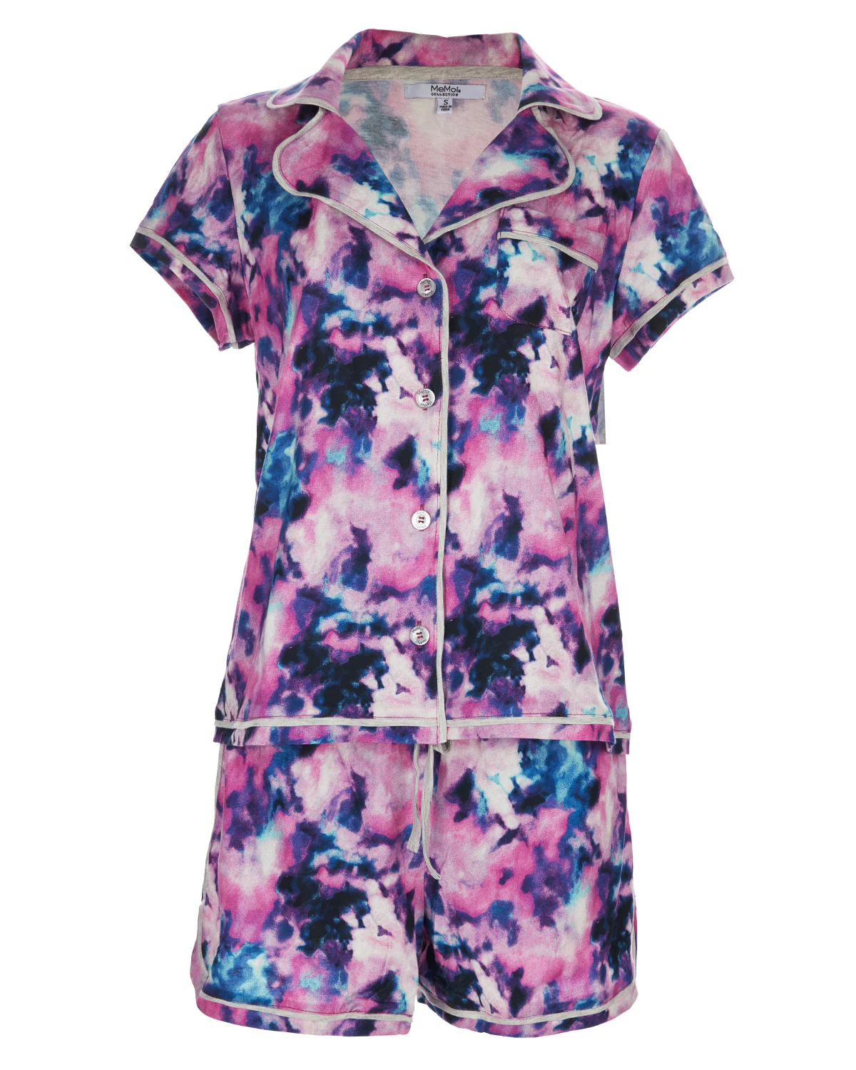 Women’s Stardust Tie Dye Notch Collar Cotton Blend Pajama Set
