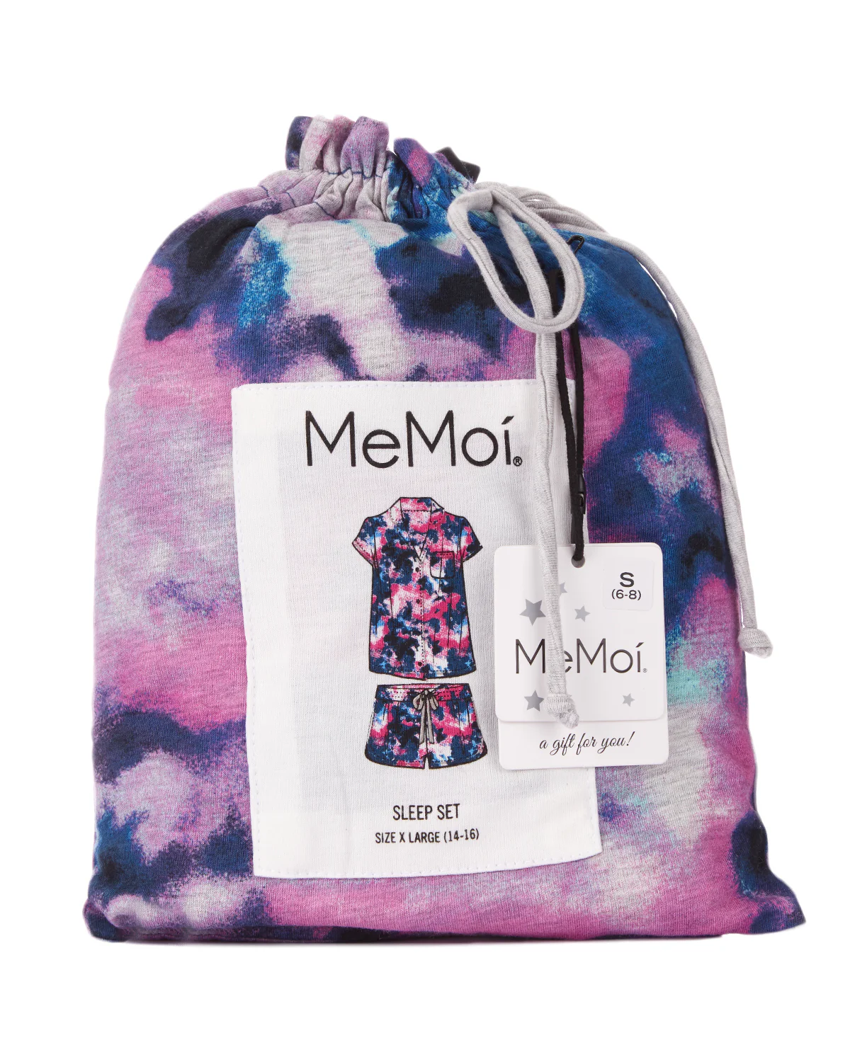 Give up sleepless nights, and get better zzz’s in our Stardust Tie Dye Notch Collar PJ Set. Ultra soft cotton and rayon yarns are woven together to create a timeless silhouette. Featuring a silky smooth and breathable button front top with short sleeves and a single chest pocket, and short bottoms that are flattering, lightweight, and finished with a classic contrast piping trim detail. Designed with an adjustable and stretchy drawstring waistband that’s ideal for napping, relaxing, and everything in between. Built to last, enhanced knit prevents pilling so you can enjoy these from season to season. They come in a coordinating drawstring bag for easy gifting and transportation.