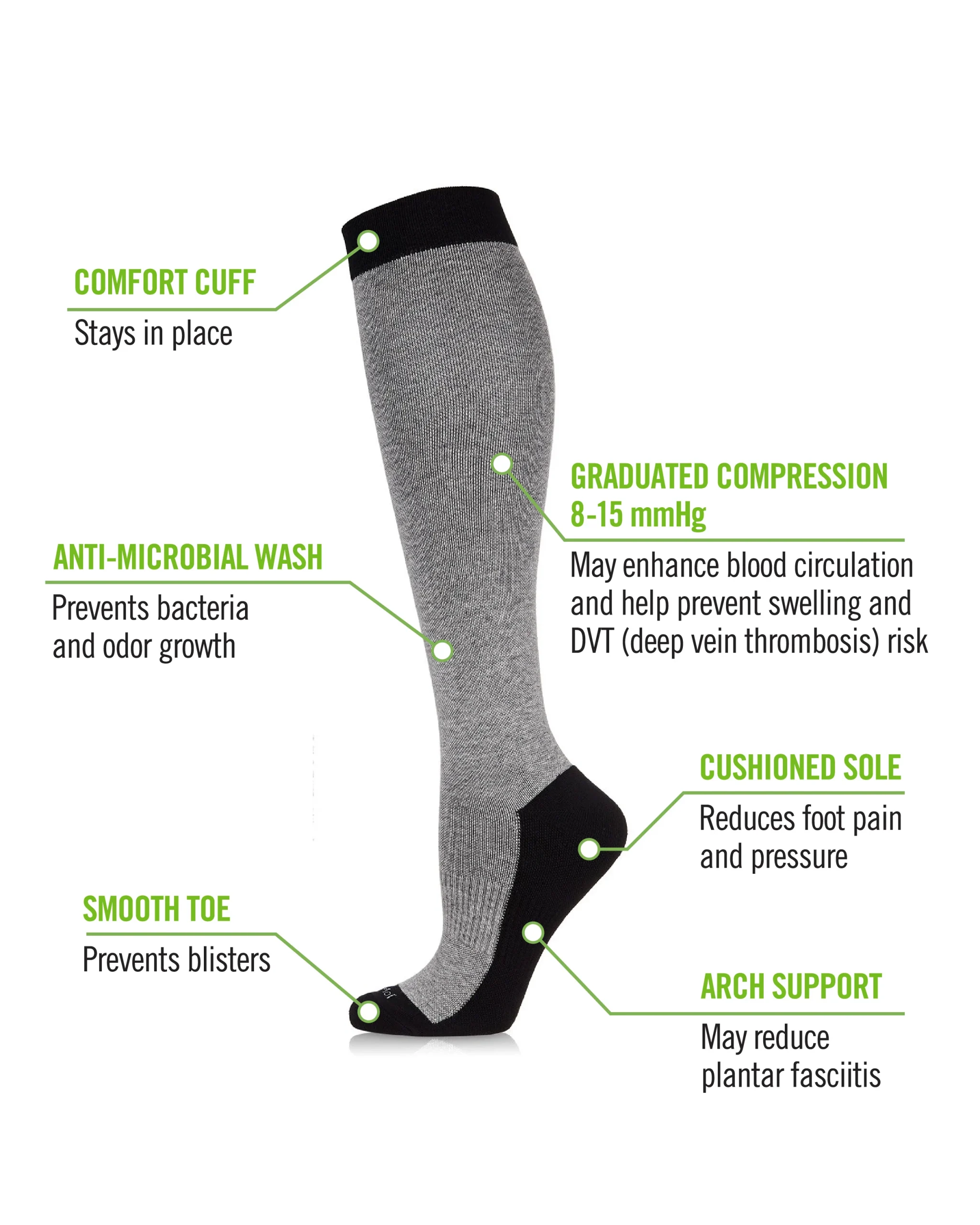 2 Pair Pack Cushioned Sole Cotton Blend Graduated Compression Socks