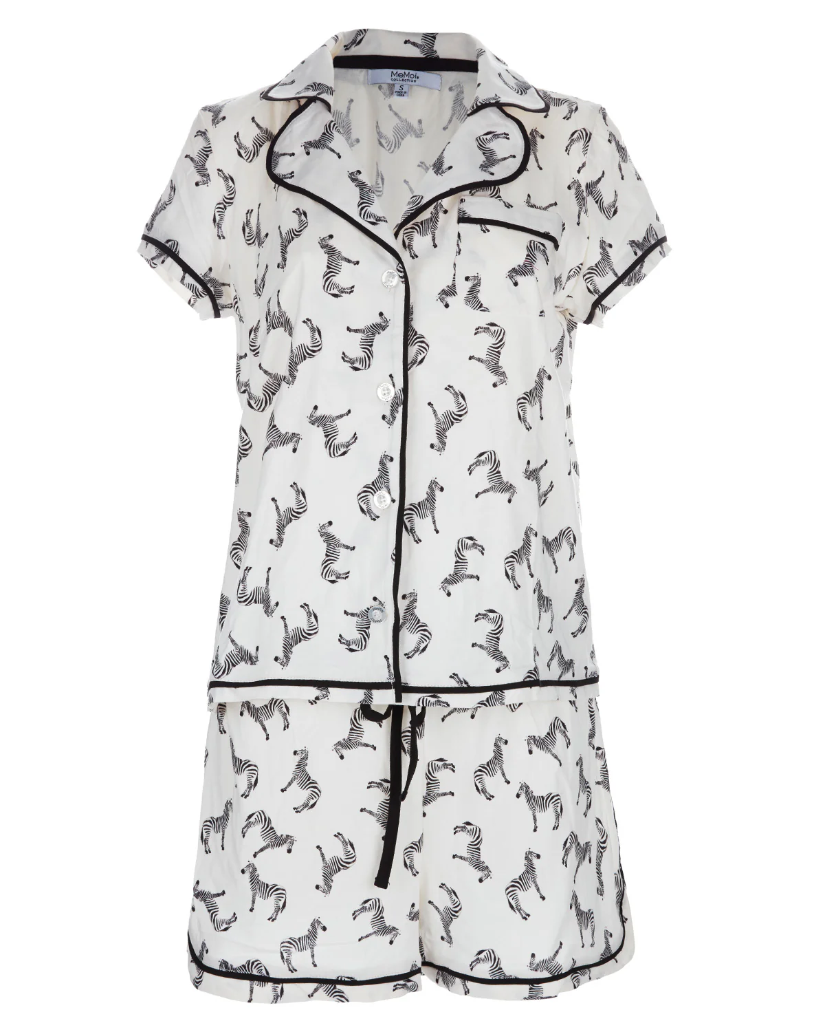 Women’s Zebra Notch Collar Cotton Blend Pajama Set