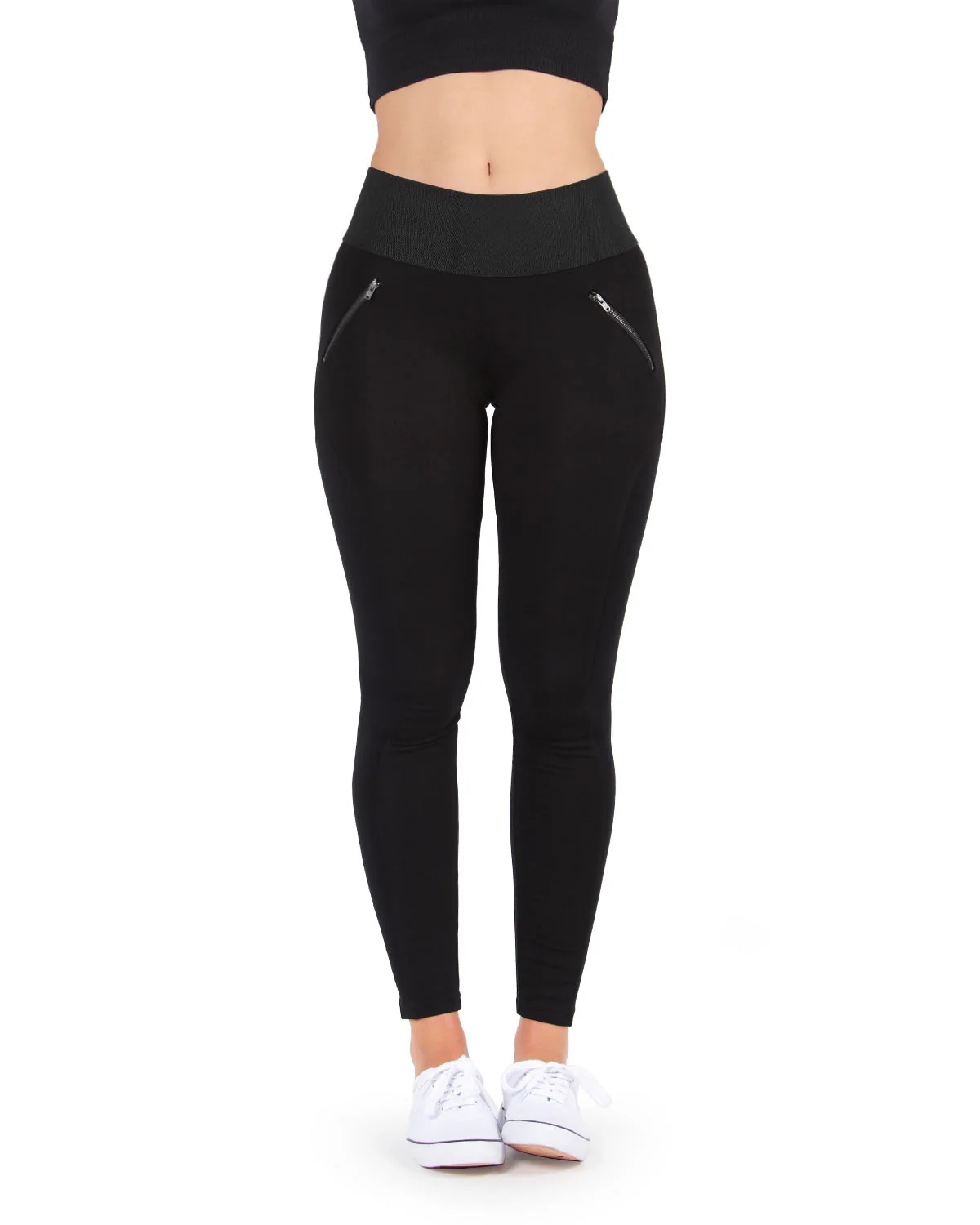 Put a zip in your step with our Ziptrack Dual Zipper Cotton Blend Leggings. Basic leggings are enhanced with a wide, comfortable waistband and dual zipper accents for just a touch of fierce fashion fun. Made with the finest material so you know they’re comfy day and night.
